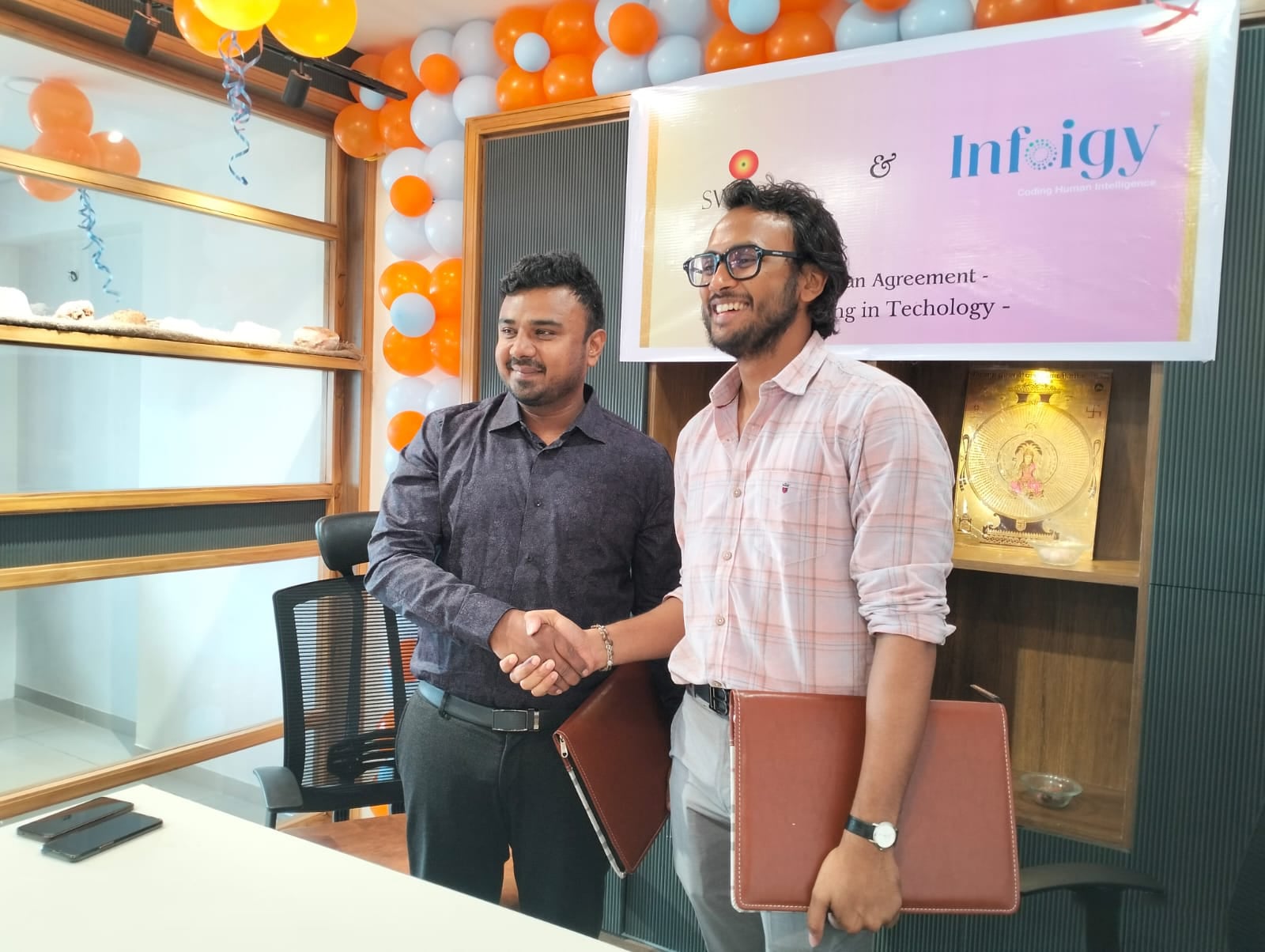 Team Infoigy and SWARG successfully finished testing the first 10 Prototype neckbands on cows. We could access their Body Temperature , Heart rate, 6 directional movement, Geo Location, etc. Next step to this process is data reading, where the Ai would do its wonder and forecast the road block ahead.